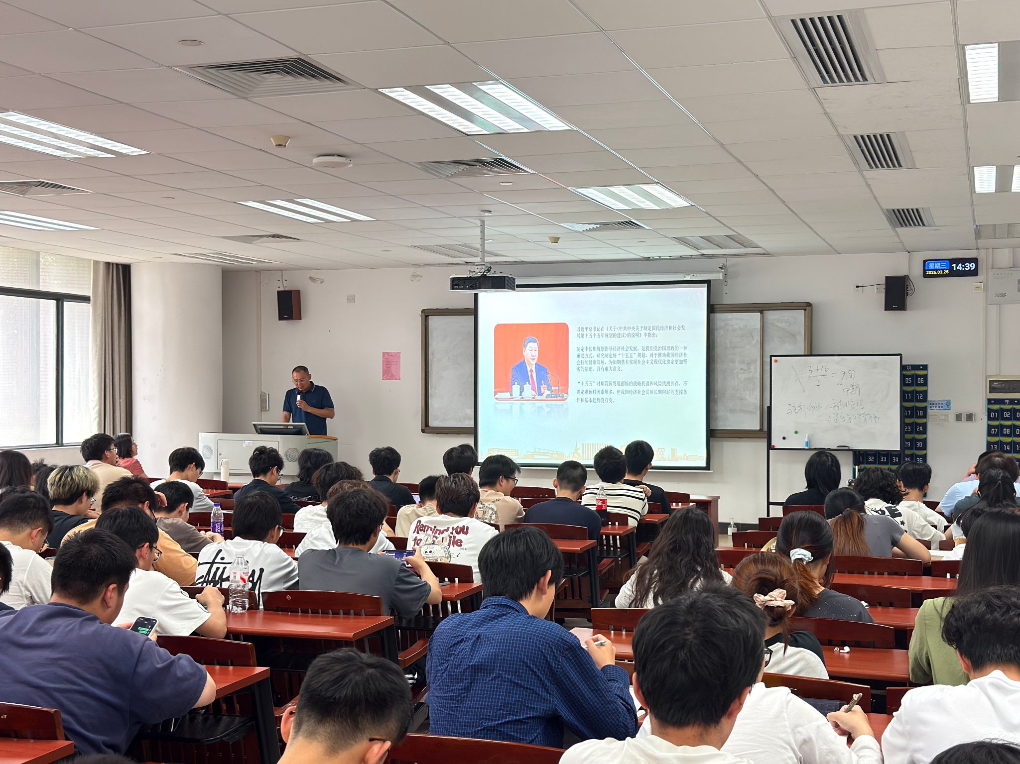 杜应发从党的二十届四中全会的重要地位和深远意义、“十五五”规划的重要原则和战略部署,以及新时代青年的使命担当三个方面,紧密结合学校高水平理工科大学建设实际,对全会精神进行了全面系统的宣讲和阐释。杜应发指出,党的二十届四中全会是我们党在向第二个百年奋斗目标进军新征程上举行的一次十分重要的会议。习近平总书记的重要讲话和全会通过的《建议》,准确把握“十五五”时期党和国家事业发展所处历史方位,深入分析我国发展环境面临的深刻复杂变化,对未来5年发展作出顶层设计和战略擘画,为我国发展指明了前进方向、提供了根本遵循。青年学生要深入学习领会党的二十届四中全会精神,要充分认识全会的重大意义,深刻把握以中国式现代化全面推进强国建设、民族复兴伟业的时代使命和历史方位,切实把思想和行动统一到党中央决策部署上来。