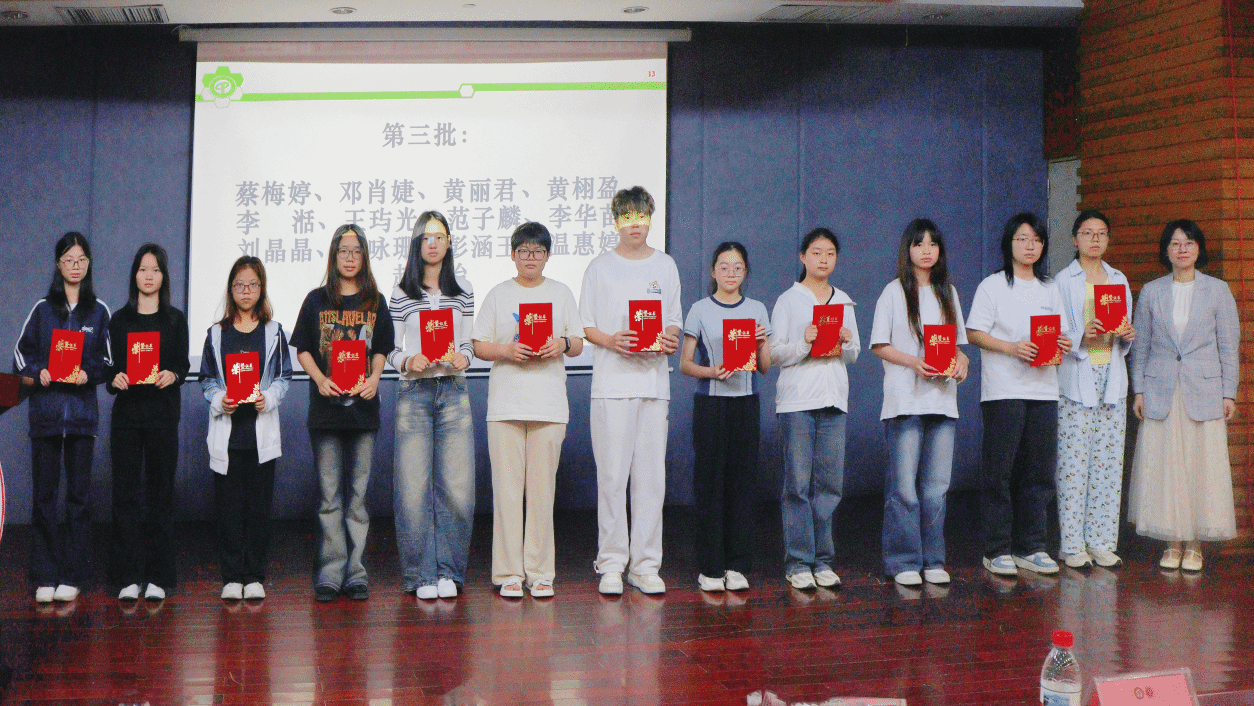 梁意红、罗兆婧与2025级第一学期考试总分状元合影。