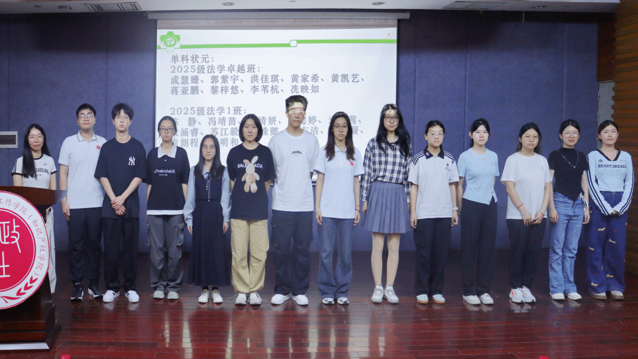专业辅导员、班主任、助理班主任与2025级第一学期考试单科状元合影。
