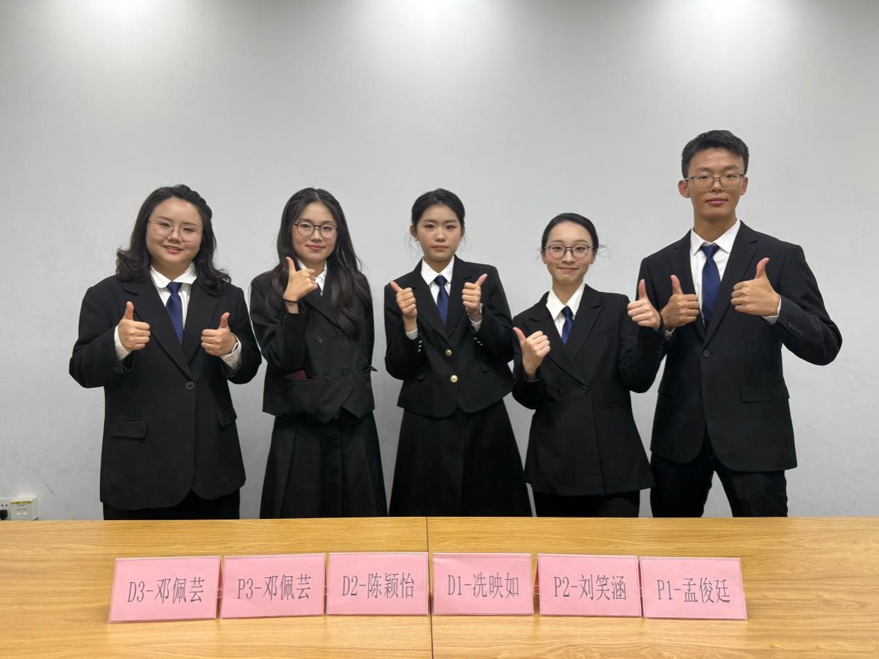 最初大家对全英赛制的畏难、对庭审节奏的生疏,都在一次次模拟辩论里被磨平。全国一等奖的成绩是阶段性的肯定,更可贵的是他们从被动接收到主动思辨的转变。这份在实战中打磨出的专业素养与协作意识,远比名次更珍贵。