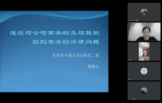 法律系于腾讯会议举办第二十二期法路历程讲座:浅谈与公司有关的及与股权回购有关的法律问题讲座。本次讲座邀请了东莞中院四级高级法官、民二庭负责人郭婧儿法官担任主讲人。本次讲座由法律系副主任吉海荣主持。